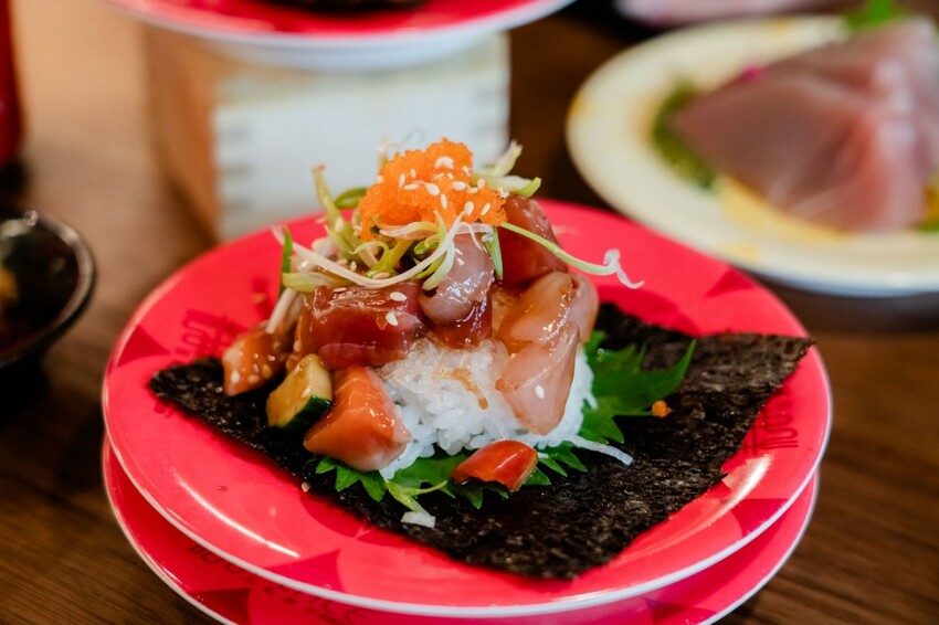 香嫩雞翅搭配魚卵的味蕾新享受,會沒吃過的人愛上!而且在迴轉壽司店吃到也是很不可思議的創舉!