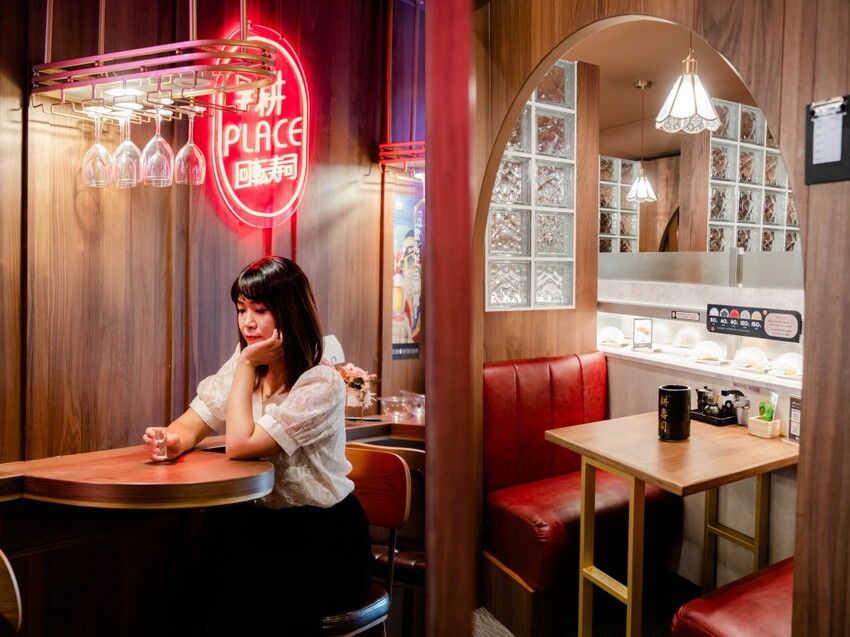 耕place有別於花蓮店,有個外表完全猜不透裡面是迴轉壽司專賣店的外觀,以深色原木帶出日式餐廳的氛圍,尤其是超顯眼logo加上木質設計與大片落地玻璃,從外面就很難忽視他們的存在!