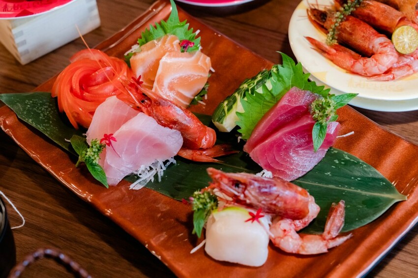 其實我沒想過迴轉壽司竟然有這麼平價又高品質的日料,這盤綜合刺身共有鮪魚、鮭魚、旗魚、生蝦、干貝5款刺身,不但在新鮮度、厚度,都打趴很多日料專門店!鮭魚選擇油花分佈最均勻的部位,剛放到嘴裡就融化的香氣,等於是在市區也能吃到海港直送的鮮美!生蝦一點滴腥味都沒有,一口下去的Q彈紮實,超療癒!