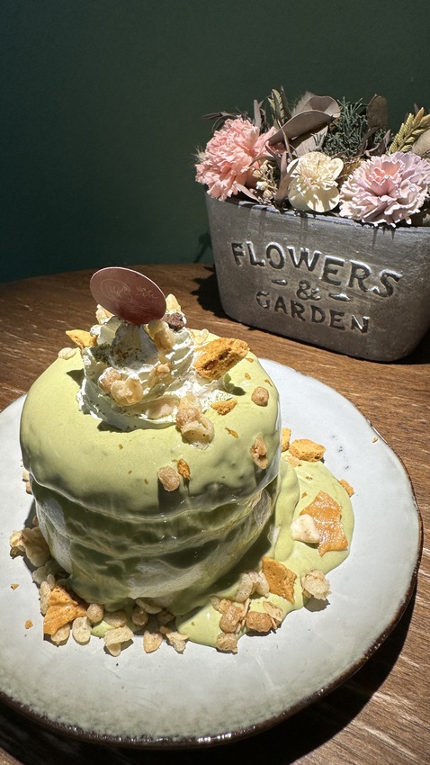 另一個吸引我目光的就是胖嘟嘟的舒芙蕾製作的過程,那如空氣般的晃啊晃,看得我非常入迷。煎好後店家的擺盤與點綴,整個讓舒芙蕾搖身變成萬眾矚目的焦點,我小小聲的說想拿去圓桌拍照竟然被老闆娘聽到特地幫我端去圓桌上,謝謝闆娘完成我這個不合理的要求,有點小丟臉。抹茶醬屬於不甜的那種,淡淡茶香與抹茶專有的澀感,讓人能不間斷的一口接著一口,旁邊點綴的焦糖脆餅也是有夠好吃,脆脆的口感配上綿密的舒芙蕾,再加上店家自己打的檸檬鮮奶油,我只能用滿足來形容。