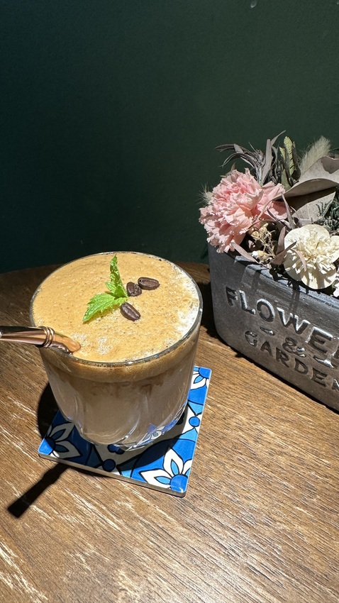400次咖啡上方的咖啡奶油打得非常綿密,讓我回想起了當初流行時自己在那邊手打的惡夢。用的咖啡也是屬比較深烘焙的感覺,比較沒有酸感,配上下方的牛奶,屬於一杯平衡度很高的咖啡,特別要稱讚一下店家,糖的拿捏度都非常的好,不會有讓人感到膩甜的感覺。