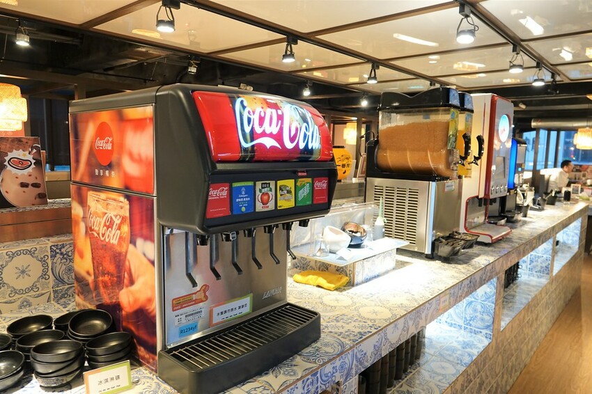 另外一邊則是一整排的飲料,有咖啡、可樂、茶飲料、芒果冰沙、冬瓜檸檬冰沙等等,別家有的,它都有。