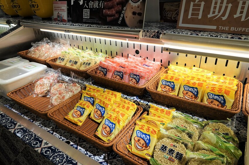 除了白飯,就是這一排火鍋的好朋友~~王子麵、蒸煮麵、意麵、拉麵、冬粉、油條、油麵筋、豆皮。