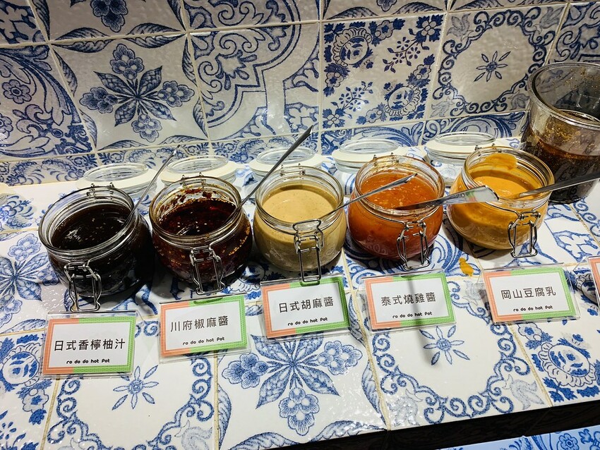 另一邊是日式香檸柚汁、川府椒麻醬、日式胡麻醬、泰式燒雞醬、岡山豆腐乳。