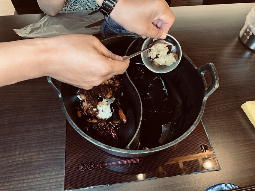 再搭配辛香料與中藥材充分混合,入口香辣而溫潤,建議先涮肉片吃,之後要加入其他火鍋料或青菜再加。