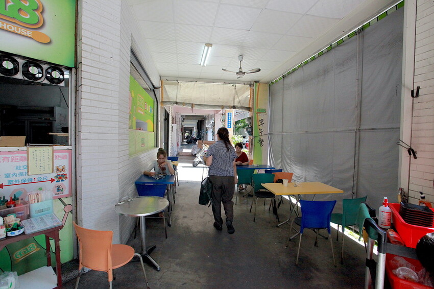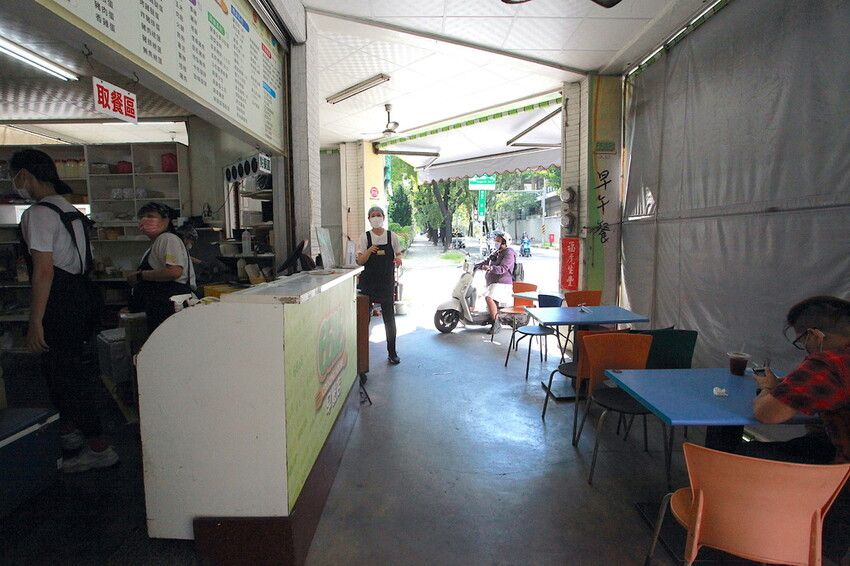 店面騎樓兩邊皆有擺放桌椅供內用,很貼心有掛上遮陽帆布阻擋陽光。