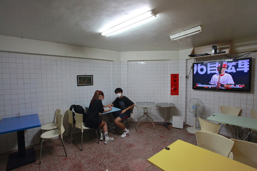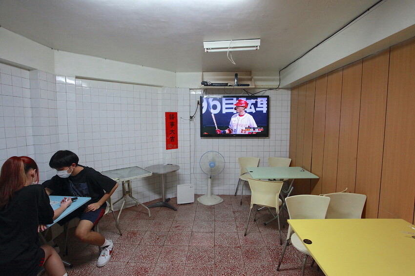 小高看學生是往地下室樓梯走,原來地下室還有室內用餐空間,還有安裝冷氣、電視和及wifi 真貼心啊!