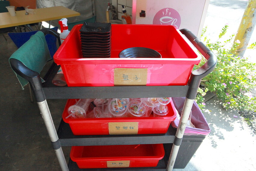 用完餐要敬請把把餐具分類回收至此。