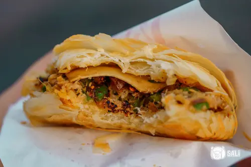 週三五六日是大慶夜市的營業日,太久沒去大慶夜市,發現了一家排隊到誇張的「楊記老潼關肉夾饃」,從入列排隊到拿到手快一個小時,離開的時候人潮一樣沒斷過,肉夾饃味道是不錯,但是等太久了啦!