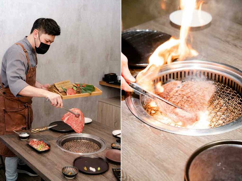 還有一個關鍵則是在代烤服務,之所以堅持要代烤,是因為隱焱匠的桌邊代烤師傅們都有數年的燒肉經驗,不論是翻烤速度、燒烤時間、火侯控制,都已是匠人手法,一般人絕對烤不出這口感!