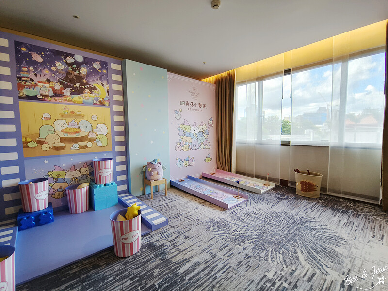 這次飯店將五樓全區打造為「角落小夥伴樂園」,共有 10 間主題遊戲間,每間都有不同的精采呢