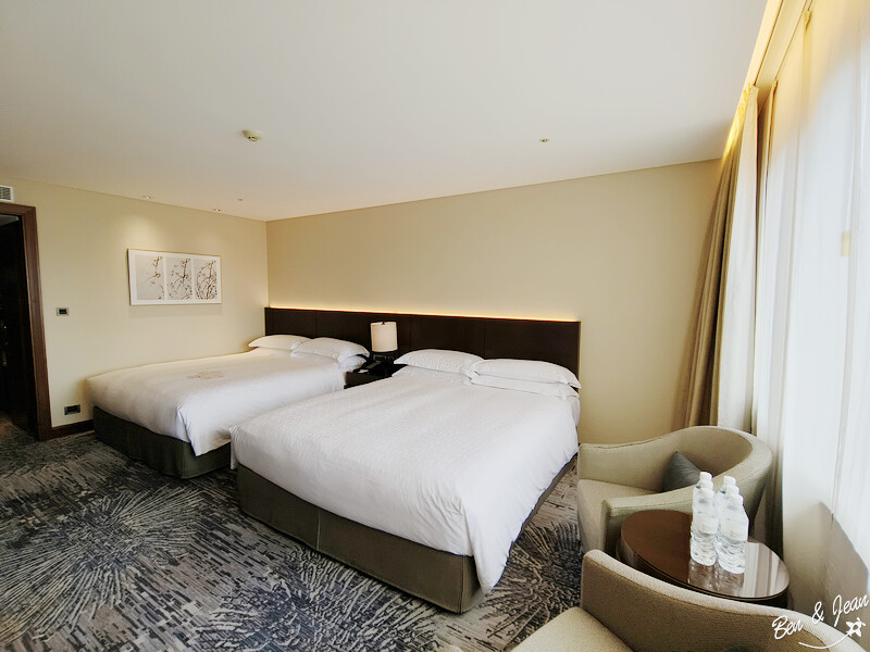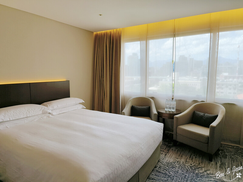 台北喜來登大飯店以服務商務旅客見長,所以客房舒適無比,寧謐的暖白色系中帶有古典柔和氣息!!