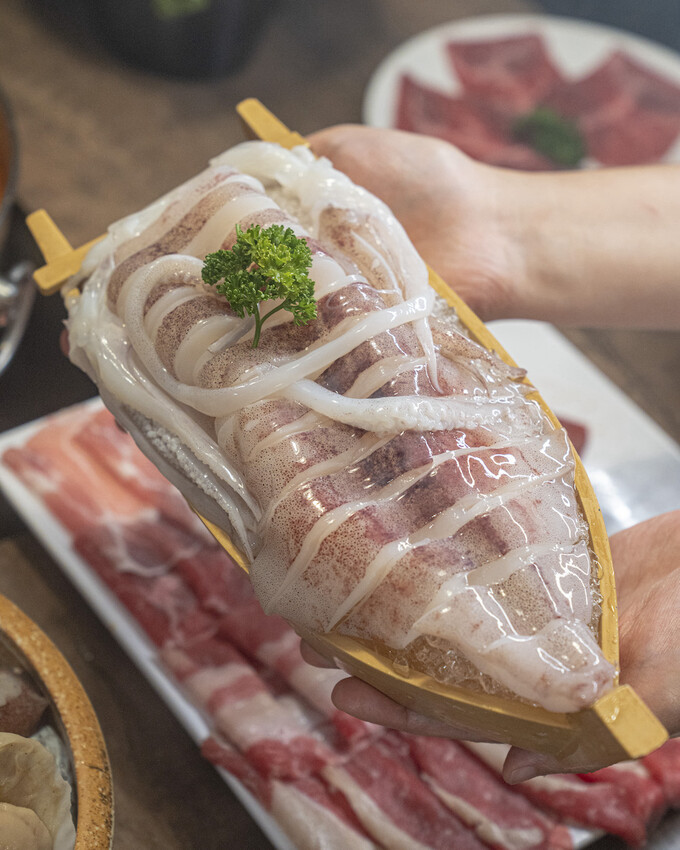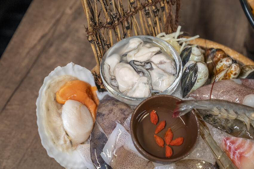 除了海鮮之外還可以選擇任選一盤肉品,品項包含雪花牛、嫩肩莎朗、豬五花、梅花豬、雞腿肉和頂級羊肩,一吃滿足海鮮和肉類的需求!