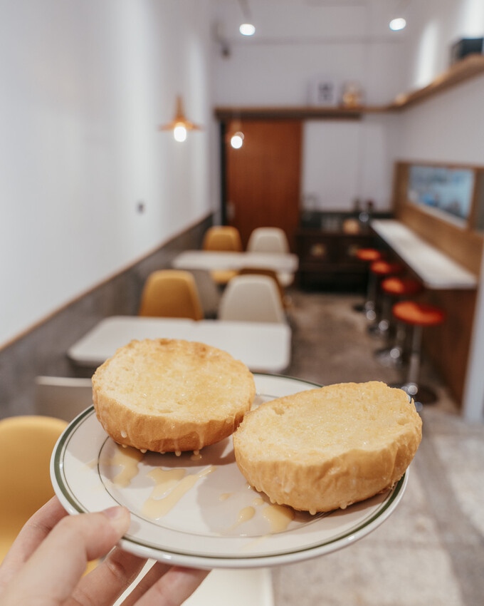先是將港式麵包烤的酥酥脆脆