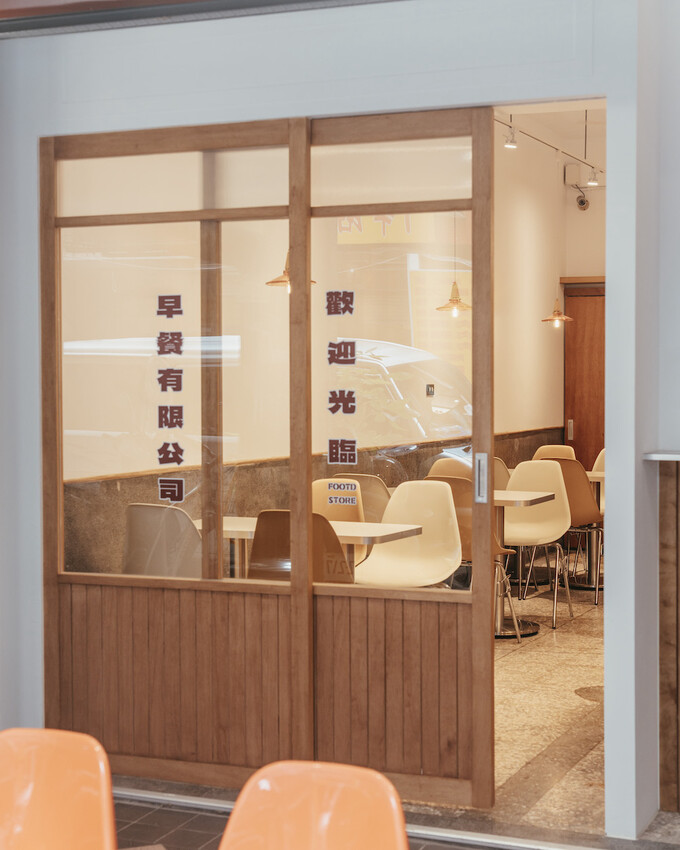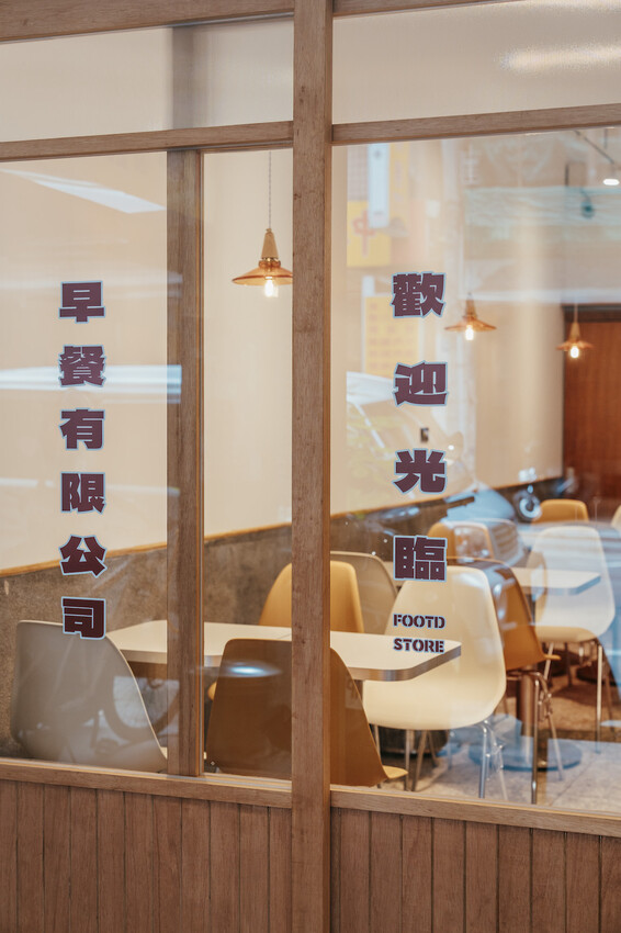 拉門上寫著早餐有限公司,另一側則是可以外帶取餐的餐口