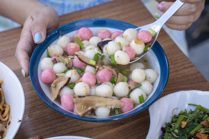最後必點的還有這碗客家湯圓,湯底是店家親自熬煮的大骨湯頭,加上香菇以及蝦米提味後非常爽口~手工湯圓吃起來軟嫩Q彈,鹹鹹甜甜的滋味值得一試!