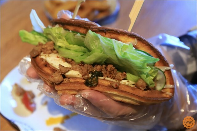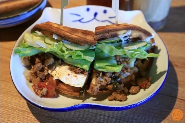 鹹口味鬆餅-台式打拋豬$120+荷包蛋$15