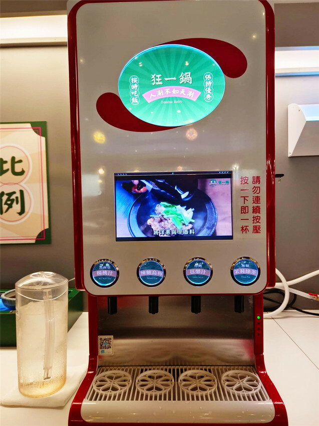 狂一鍋的飲料機總共有四種選擇: 茉莉綠茶,芭樂汁,煉糖烏梅和楊桃汁