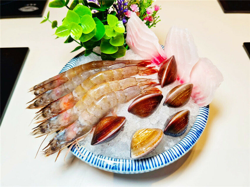 蝦子是白蝦,給了5隻,鯛魚則有3片,另外還有幾個蛤蠣