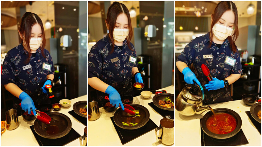 我的火焰香辣鍋是必須由工作人員在桌邊現炒,所以他們會先備好配料