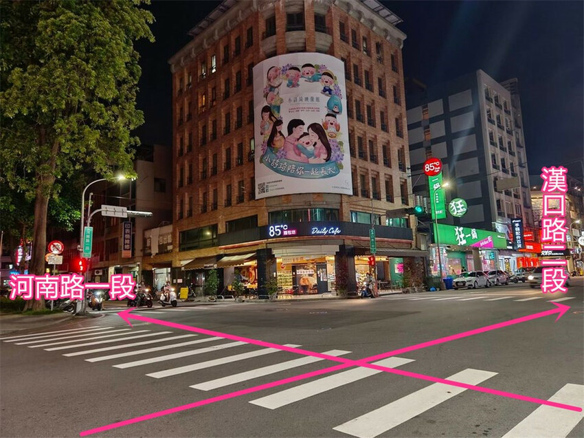 狂一鍋漢口店就在漢口路二段和河南路一段的路口,旁邊還有一家85度C