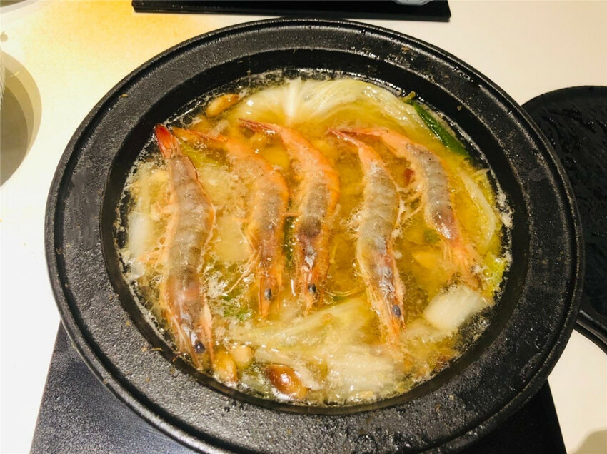 涮完豬肉,再來加入蝦子一起煮,蝦肉扎實鮮甜,海鮮夠青就好吃🦐