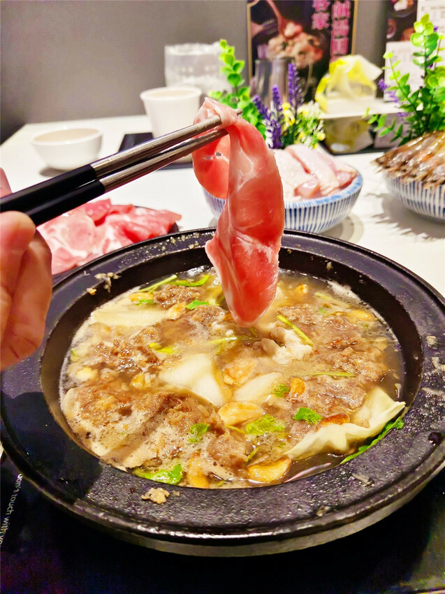 涮個宵夜場送的沙密斯梅花豬,跟排骨酥湯底吃起來還真搭呢!