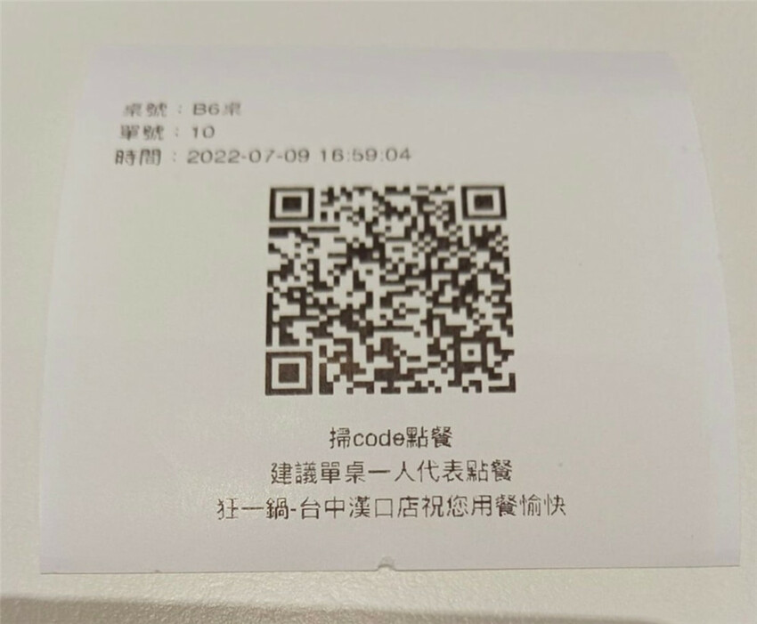 狂一鍋採用掃碼的點餐方式也很方便,每一桌只需一個人拿出手機就能點餐了📲