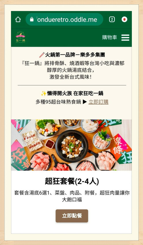掃完條碼後,就能進入狂一鍋的線上點餐,滑動手機頁面即可看到不同的餐點