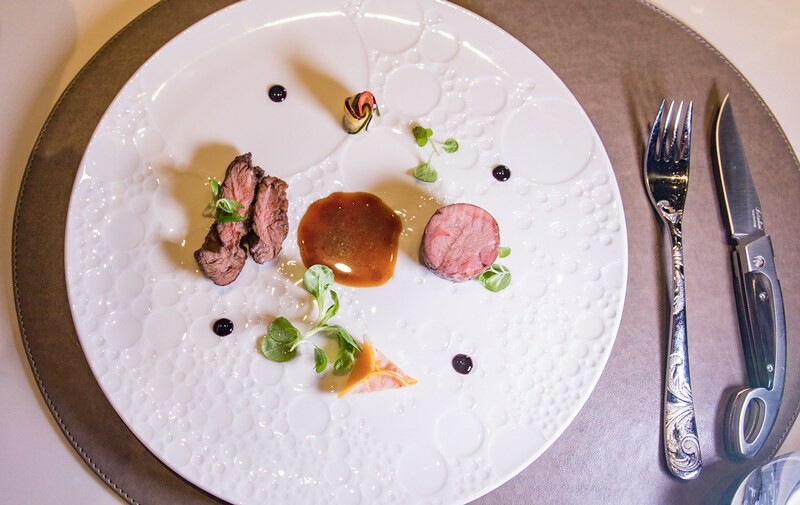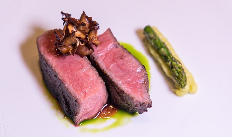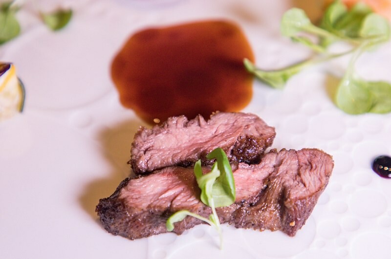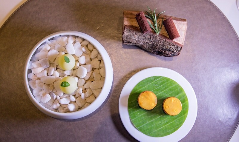 主食肉類一共有三種,分別是美國特級肋眼、近江和牛和100%純種橡木子等級伊比利豬,後者真的真的真的超嫩超甜,帶著一種伊比利豬特有的香氣,非常油甜美味,搭配的是法式燉菜和大根蘋果南瓜泥迷你餃。