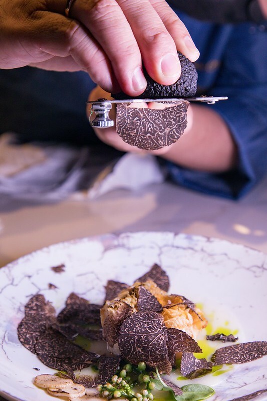 加價現刨澳洲冬季新鮮黑松露,加價980元。話說以往吃到的都是Jimmy精挑的義法黑松露,今天使用的是澳洲最頂級的黑松露,我真的不誇張當他把黑松露放在我面前,我一邊拍一邊就聞到滿室生香的松露氣息,仔細看這松露像是日本和牛的油花,特別的清晰,入口微微的脆口後,是松露香氣爆發的化口,真是我吃過最好吃的黑松露無誤.....。