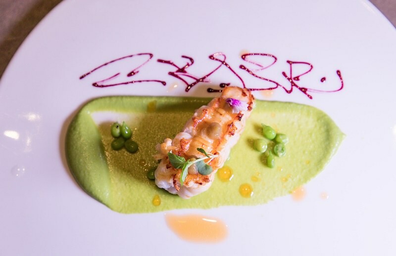 龜山島的「大尾角蝦」因為海域的關系,口感特別Q脆,甜度也非常夠,這次他加入奈米分離機製作非常非常非常細膩的豌豆泥,和蒸餾濃縮的甜菜根汁(滴狀),配色也調味,順便增加一點滑順的化口,盡量還是把口感、味道留給大尾角蝦表演。