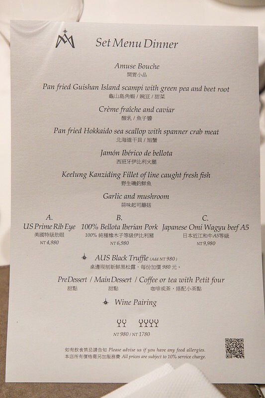 CIMES君尹提供午餐$2980起、晚餐$4980起的套餐或包場服務這是當天Jimmy主廚幫我們安排的菜單,價位依主食(肉類)的不同而不同,還有額外加價刨松露的服務,餐酒方面可由專業的待酒師為你搭配,兩杯是980元,三杯則是1780元。