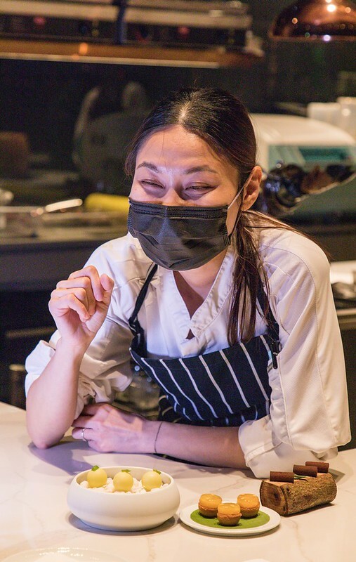 豬頭肉做的碳球,雖然不大但上面堆滿像是分子料理的泡泡,拍完照還在想該怎下手時,Jimmy主廚居然拿著刀叉對著我走了過來。