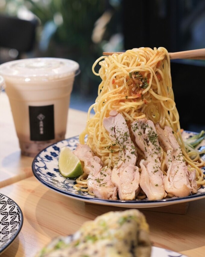 ▼泰式酸辣雞肉涼麵的麵體偏細,更好吸附醬汁,酸酸的吃起來很清爽,雞肉片很軟嫩好咬,是一道很開胃解膩的餐點~