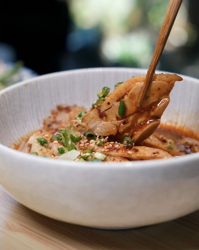 ▼個人私心非常喜歡的四川口水雞,辣勁很夠香氣十足,雞肉咬起來更是多汁軟嫩,醬料好吃到想要自己加麵進去拌。