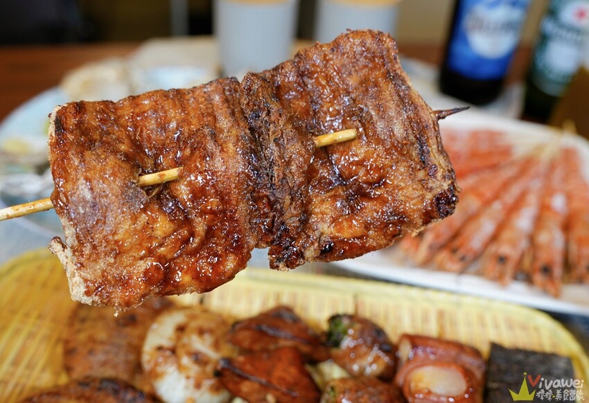 ▲虎烤蝦搞的串燒偏南部口味,吃起來微鹹微甜,我個人很喜歡這樣帶有微微甜味的串燒,吃起來不死鹹!如果要內用店家還提供「去籤」的服務!