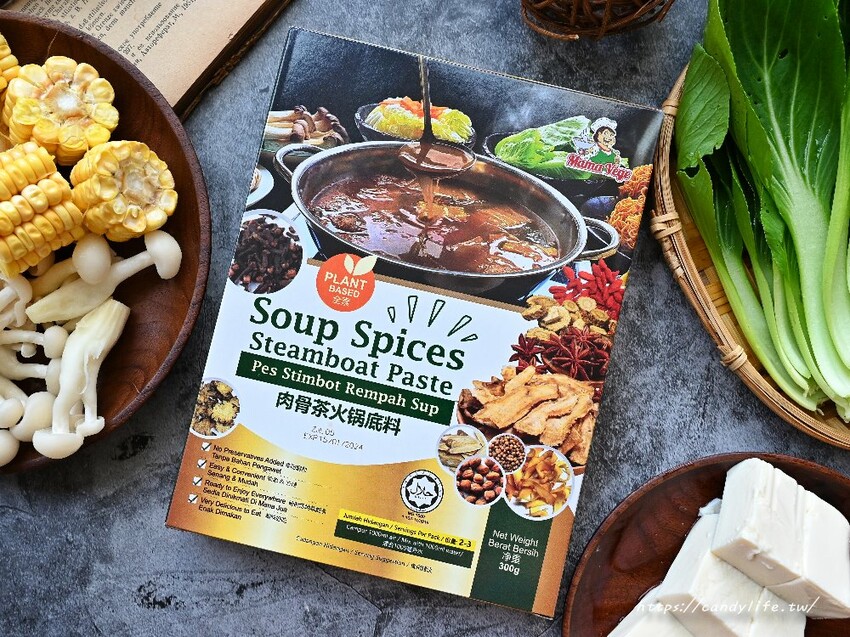 想要在家煮火鍋,Mamavege也有推出火鍋湯底,有肉骨茶湯底、濃郁番茄湯底及泰式東炎酸辣湯底,糖糖這次挑選的是肉骨茶湯底,只需要倒入1000cc的水,滾了之後再放入自己想要搭配的食材就完成囉