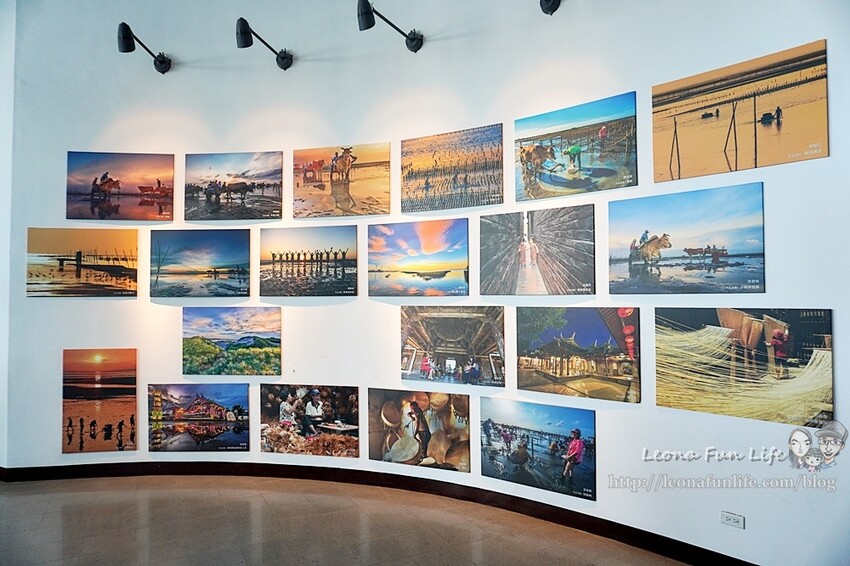 將彰化生態攝影專家謝文猶老師的作品展示在牆面上。