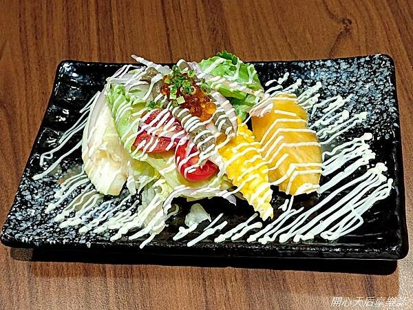 蟹膏沙拉,生菜、水果加上鮭魚卵、蟹膏,再淋上少許美乃滋,多層次的口感及鹹甜口味,讓我們很快吃光~