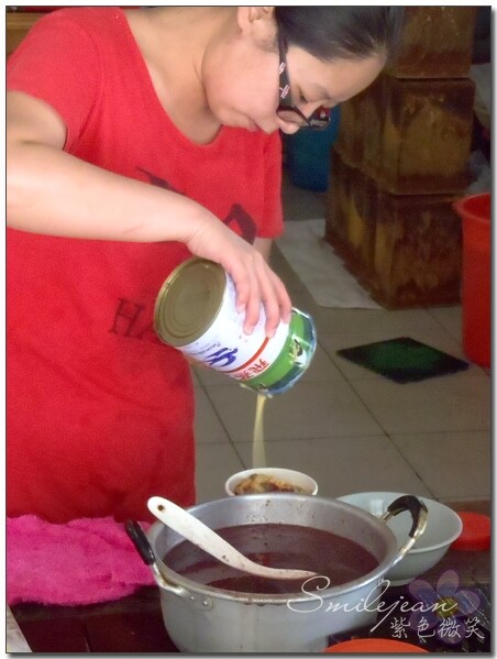 老闆挖起3球清冰,依點的冰不同再加上煉乳、花生、紅豆、生雞蛋…一碗冰就完成了