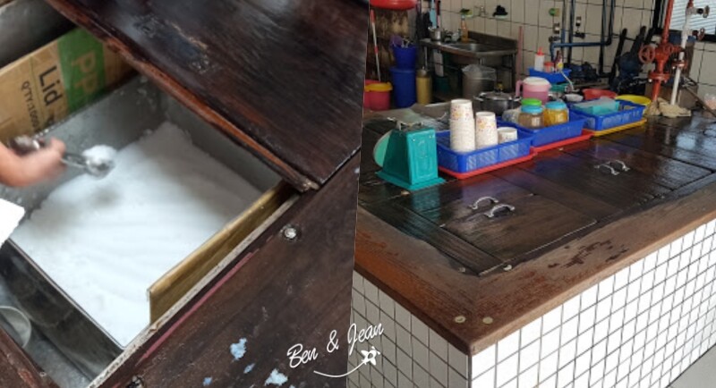 這家店非常古早味,木板下面是冰箱很傳統吧!