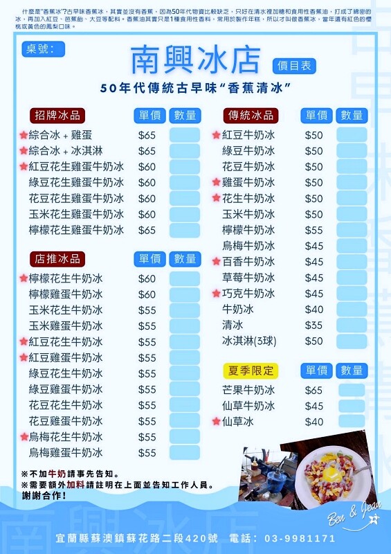 蘇花公路上路經南澳鄉,有家南興冰室,也是蘇澳的老店冰喔!這次南澳之旅原本是要去吃建華冰店,在問路的同時,一位當地的阿伯卻對我說,我跟妳說我們當地人都吃它對面那家店,那真的是老店啦,妳不吃會後悔!跟我們一起來看看吧~