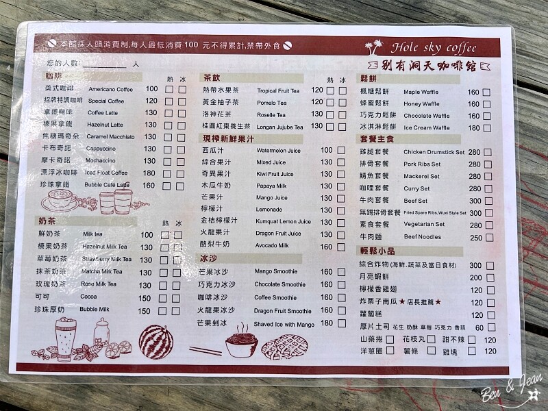這裏算人頭的,低消一人100元!! 我們點了簡單的冰品 飲料,還有炸栗子南瓜!! 也有套餐可以享用
