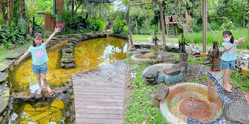此處水源為地下湧泉,經過規劃形成一個生態園區,天氣好的話適合走一走拍照很悠閑。利用具有豐富天然湧泉水施作生態化功能水路,建造親子多樣化活動設施,提供遊憩景點。以近自然工法整理河岸護坡,營造親水空間及水生動、植物棲息繁殖水域環境,使原生種河蜆、毛蟹、溪哥等魚蝦類及水草、野薑花等動、植物重現,並於圳岸植栽綠色花木潤飾,回復大地生命原貌,改善田園景觀,美化農村生活環境