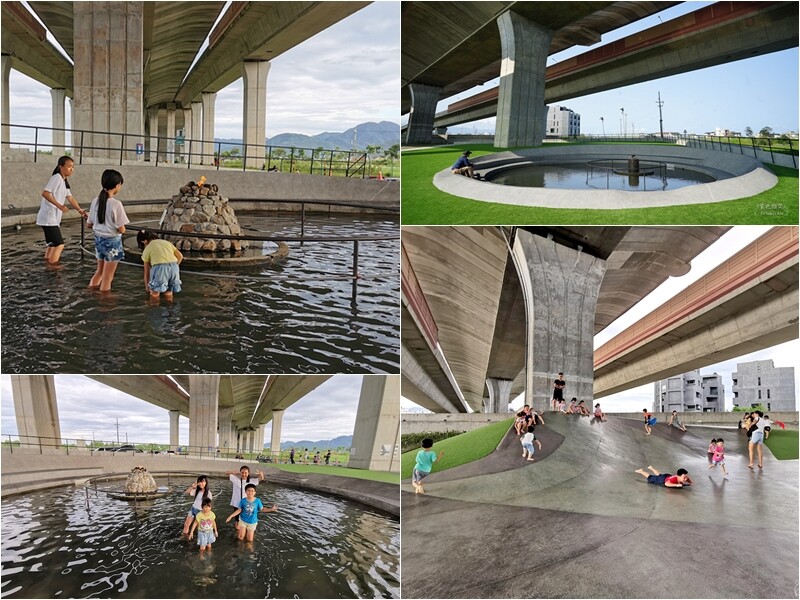 高速公路下,免費戲水池、大碗公溜滑梯。「風火水土地景體驗場」也將整合橋下閒置空間,及湧出的泉水,再搭配溪邊多處火源點,讓遊客可以在溪邊遊玩,也順便了解奇特的地質現象。