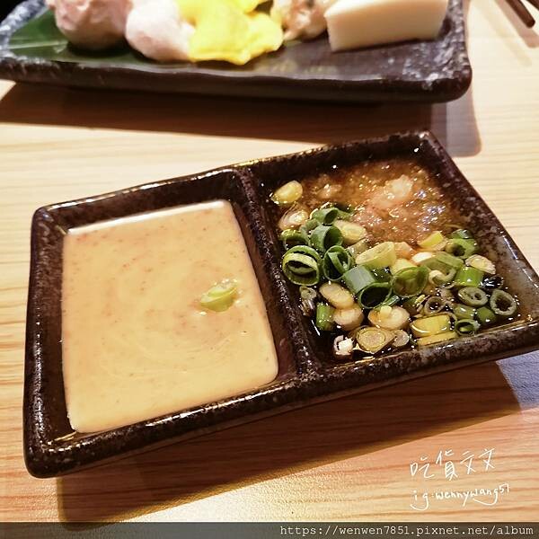 將肉沾上左邊的胡麻醬真的超級滑順又好吃,