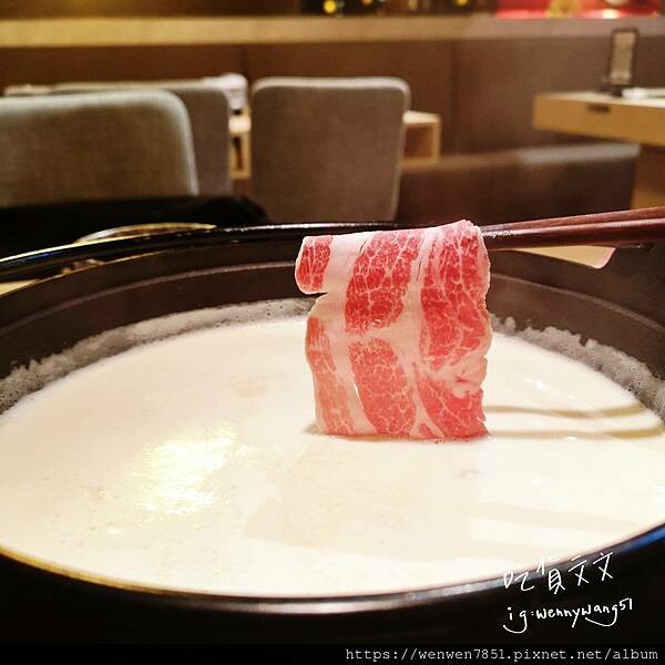 這是雞骨高湯+牛奶一起熬煮而成的牛奶鍋,