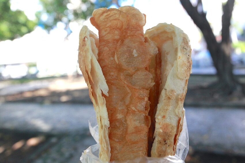 這燒餅油條份量超大的定價很超值,這油條是自己製作油炸而成。