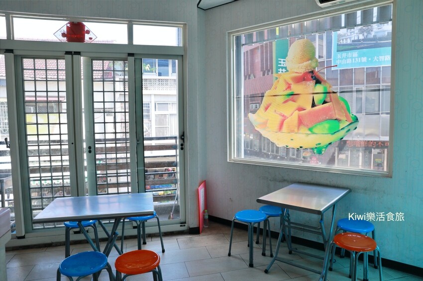 玉井有間冰舖芒果冰竟然將二樓打造成希臘風景的座位區域,挺特別的!